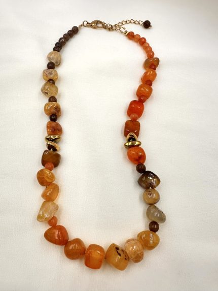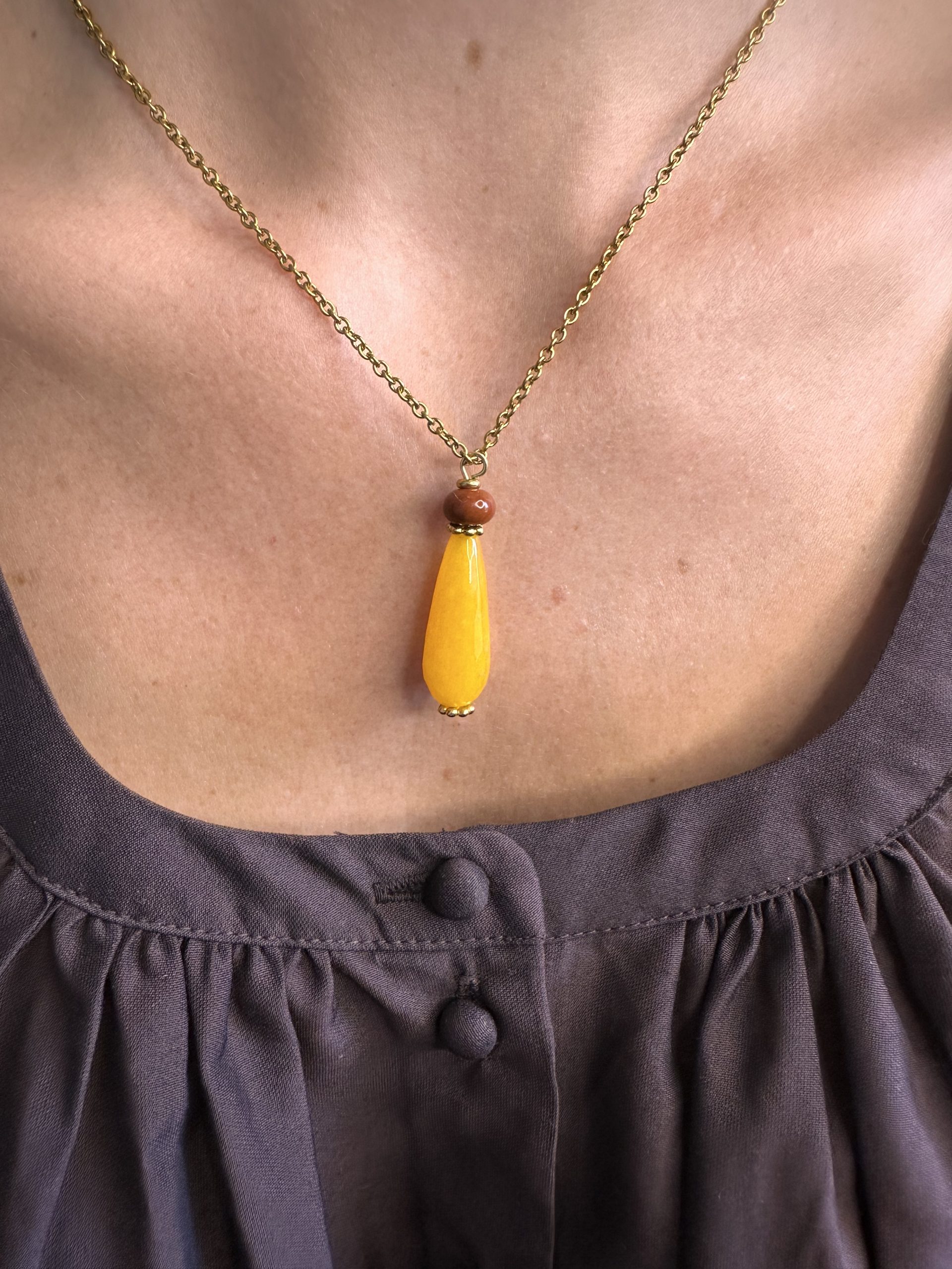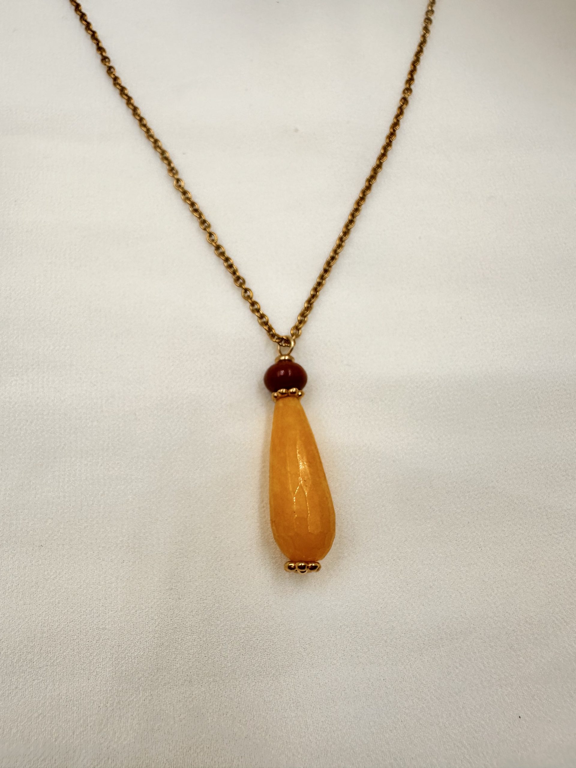 Κομψό μενταγιόν με σταγόνα από μελί ημιπολύτιμο λίθο αχάτη, κρεμασμένο σε επιχρυσωμένη ατσάλινη αλυσίδα.