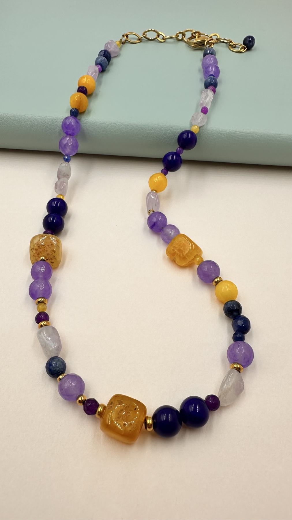 Κολιέ κατασκευασμένο εξολοκλήρου ημιπολύτιμες πέτρες και ατσάλινα στοιχεία.