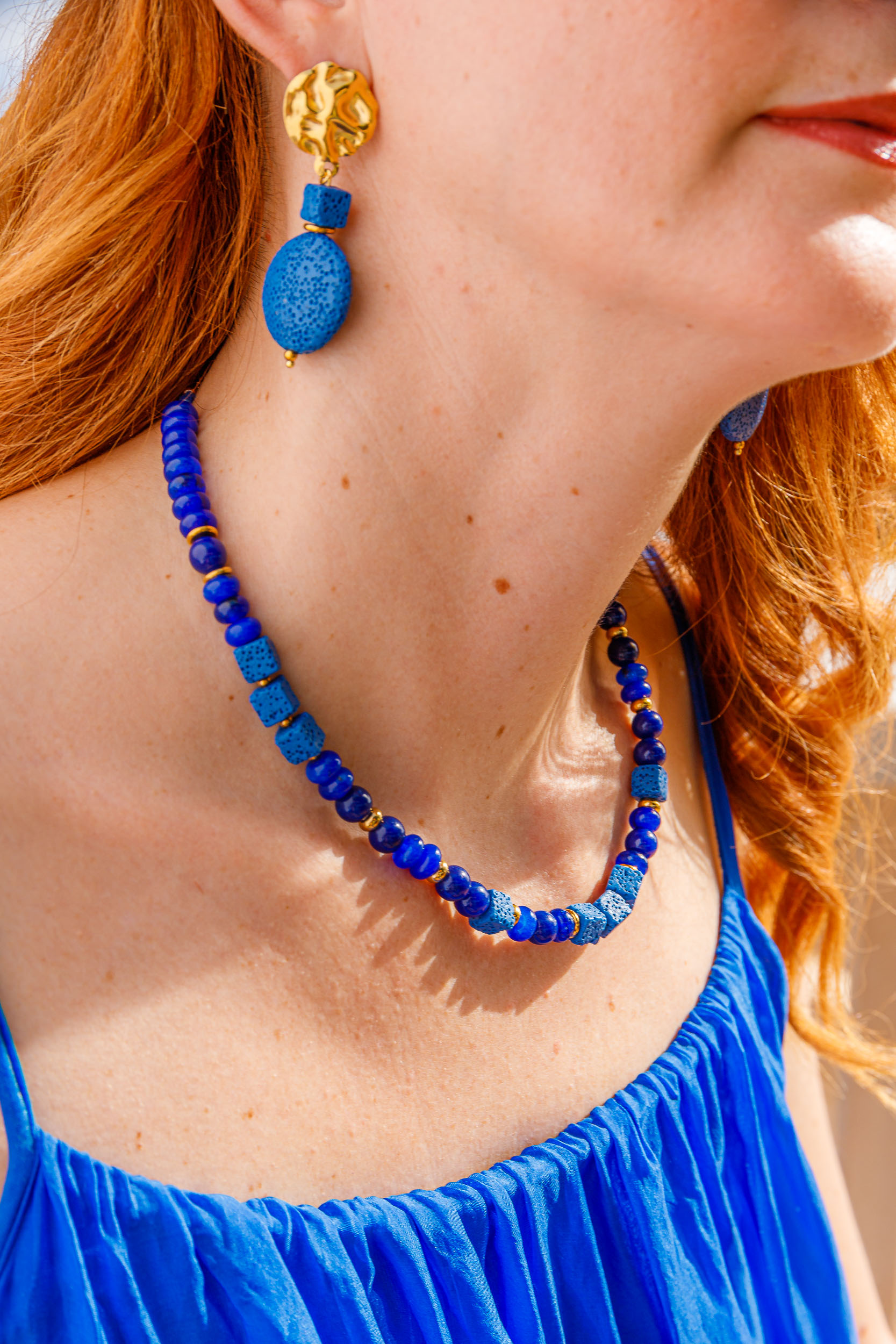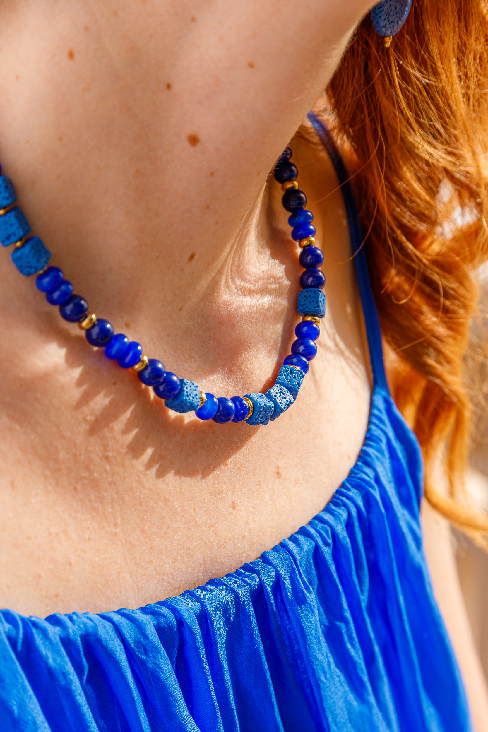 Xειροποίητο κολιέ από με νεφρίτη και λάβα .