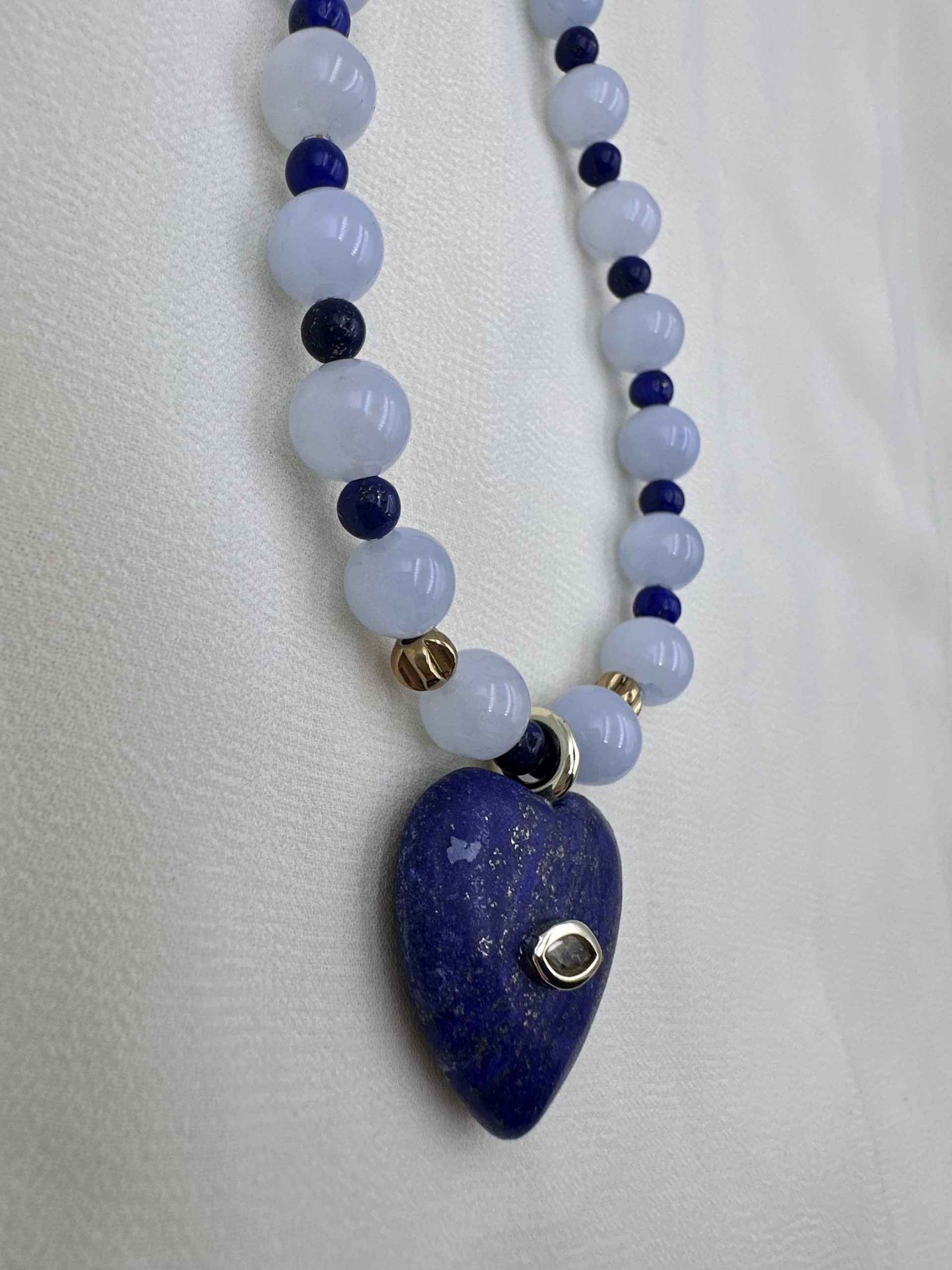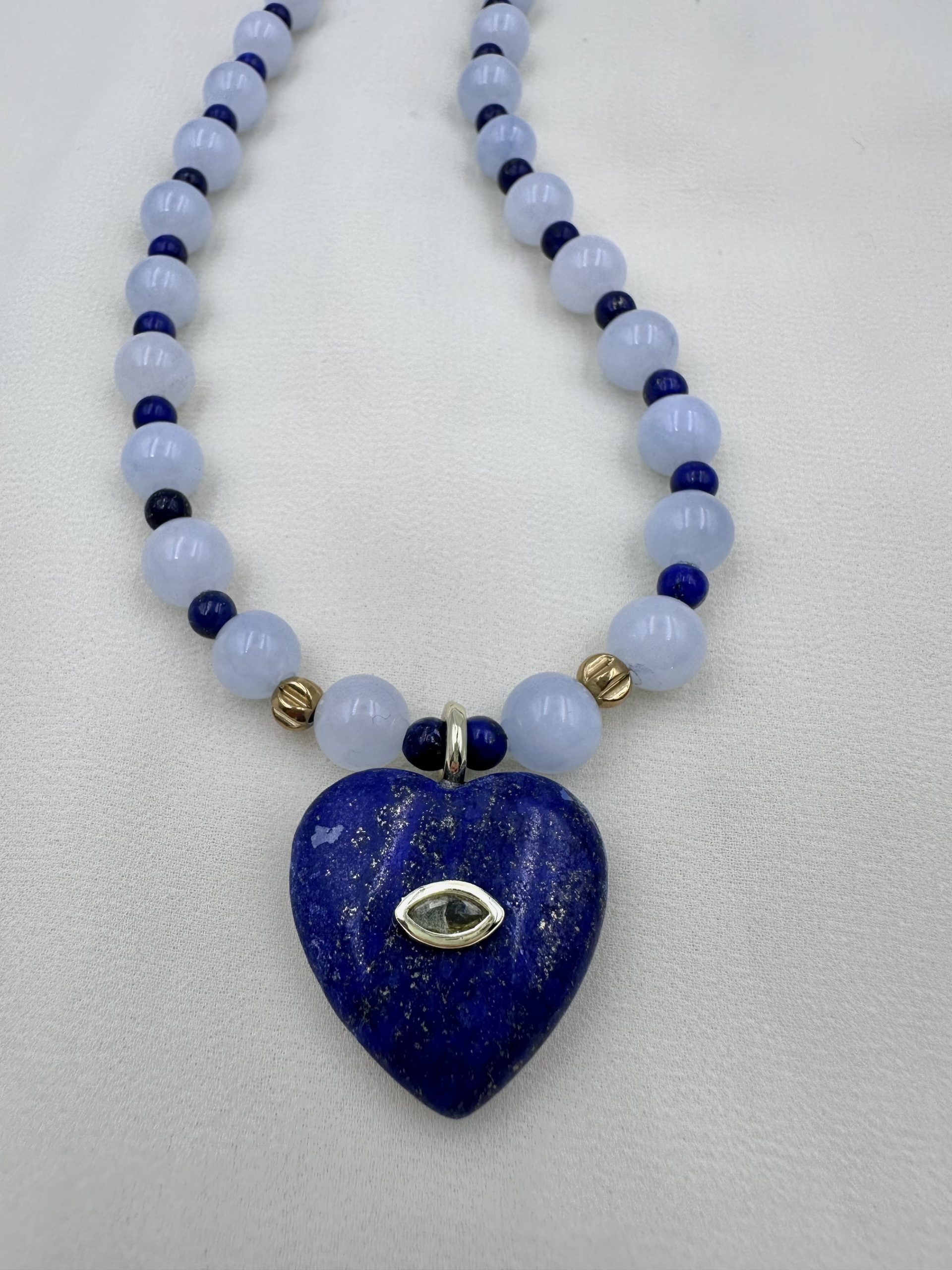 Κολιέ με διάφορες ημιπολύτιμες πέτρες και μενταγιόν καρδιά.