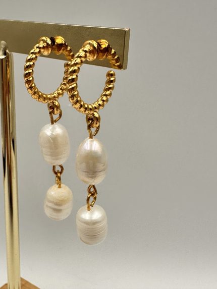 Σκουλαρίκια με αληθινά μαργαριτάρια γλυκού νερού και επιχρυσωμένη ατσάλινη βάση.