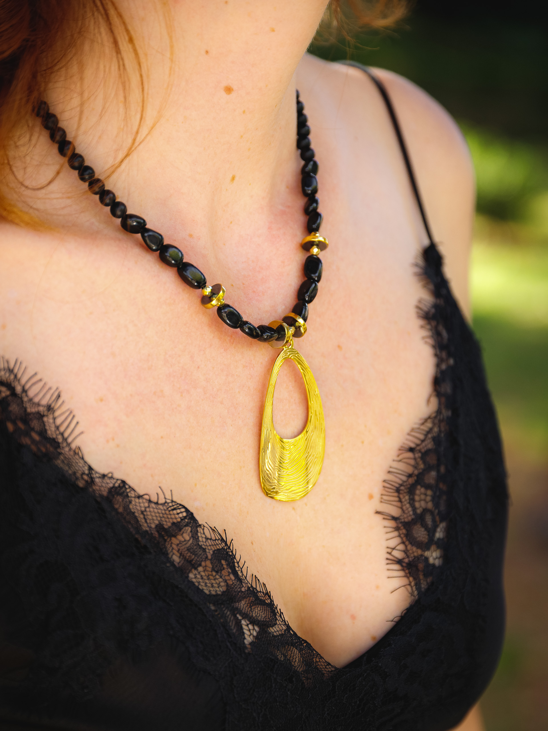 Χειροποίητο κολιέ που αποπνέει μυστήριο, ισορροπία και γυναικεία αυτοπεποίθηση.