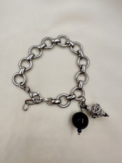Βραχιόλι ασημί με διπλή σειρά χάντρες ξύλινες από τη σειρά Resort Collection.