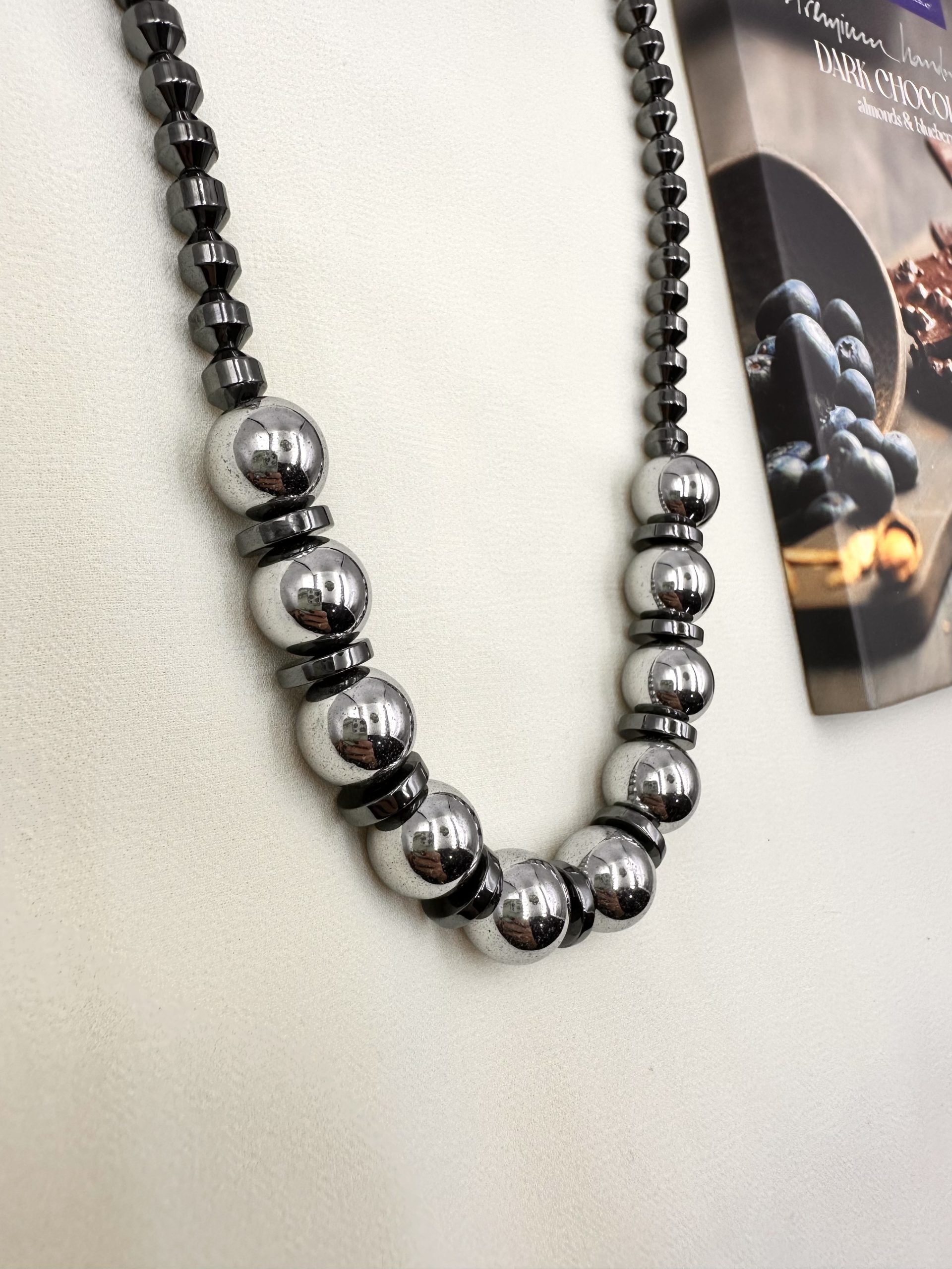 Κολιέ με ασημί αιματίτη που φέρνει σε ισορροπία το statement me to minimal.