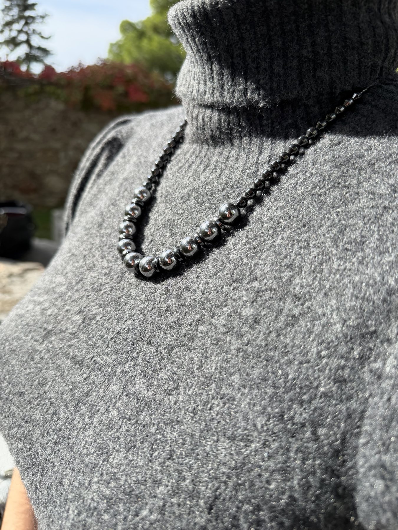 Κολιέ με ασημί αιματίτη που φέρνει σε ισορροπία το statement με το minimal.